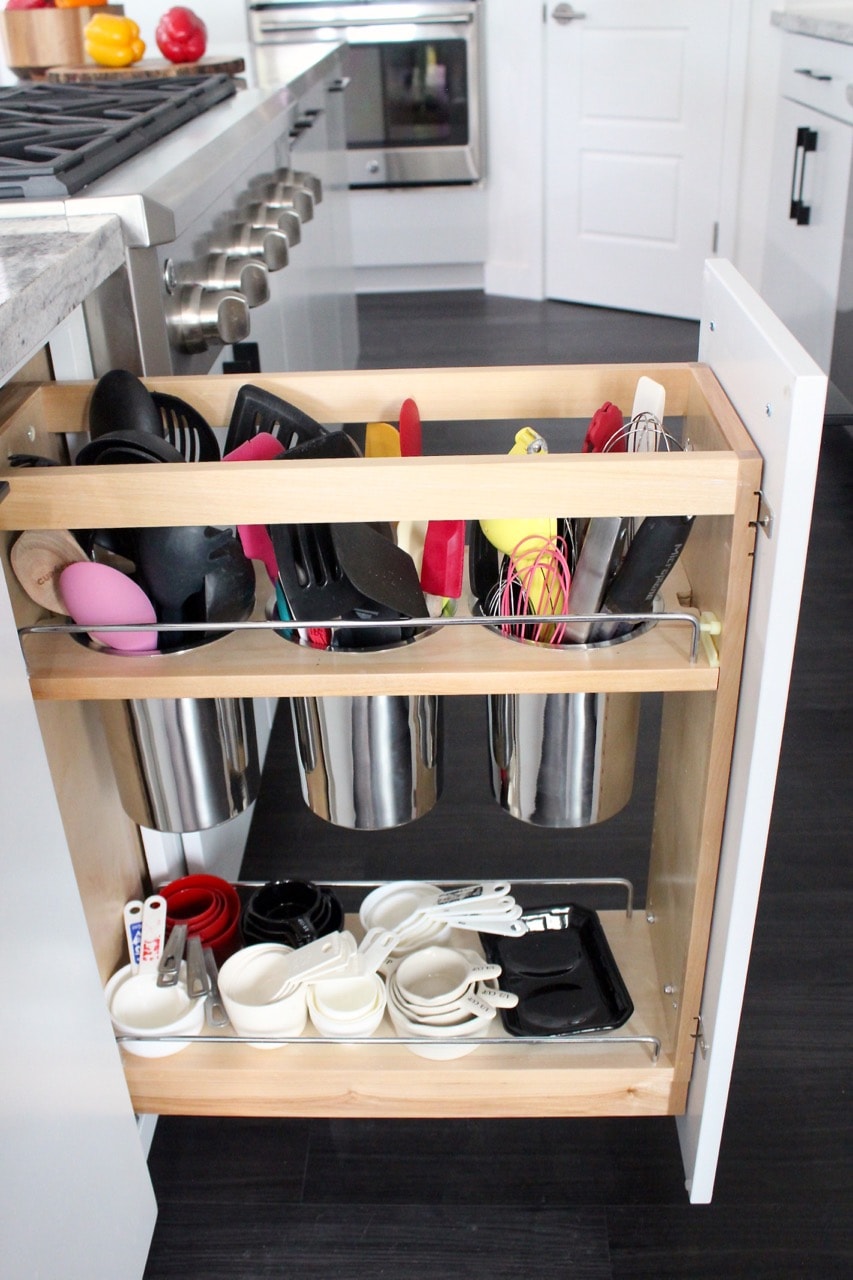 Now for some of my favorite features in the kitchen remodel. Let’s start with organization! I am totally obsessed with keeping my kitchen organized to make cooking easier (because obviously I do a lot of it!) so I spent hours scouring Pinterest for the best ideas and built the most organized kitchen possible!