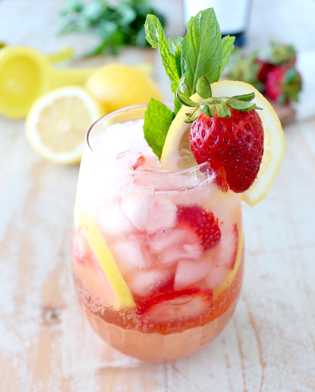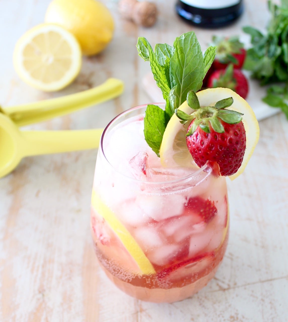 Fresh lemons and strawberries are mixed with bubbly prosecco for a refreshing prosecco sangria recipe. It’s perfect for spring and summer!
