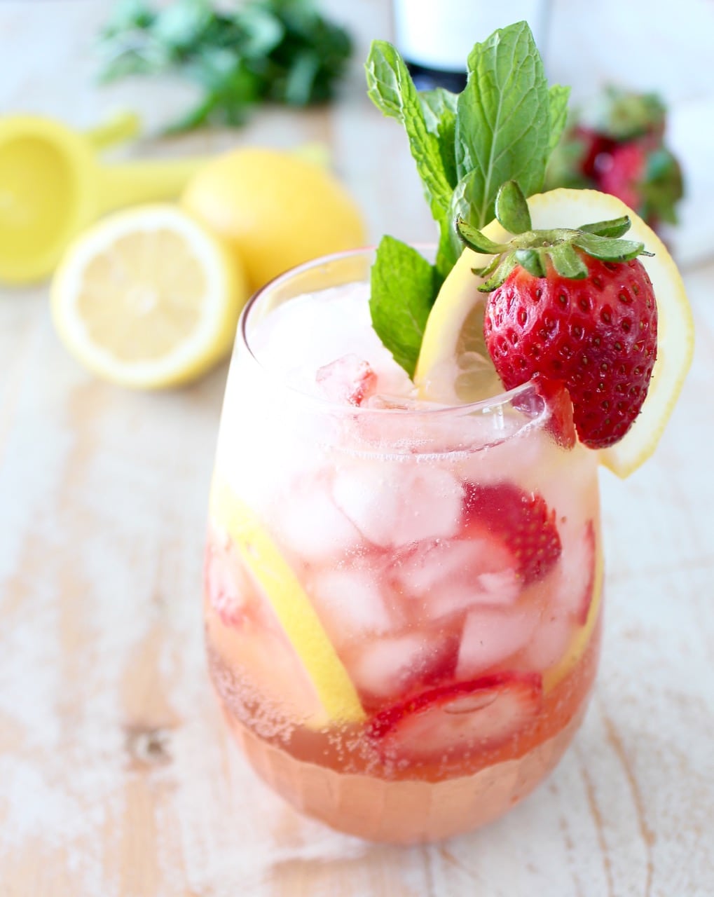 - If you want to add mint to the sangria, add 1/4 cup of fresh mint to the pitcher with the strawberries and muddle it in with the lemons, strawberries and sugar.