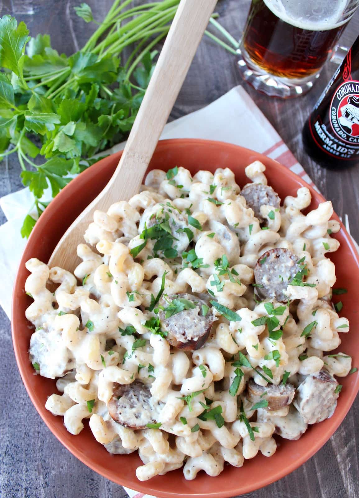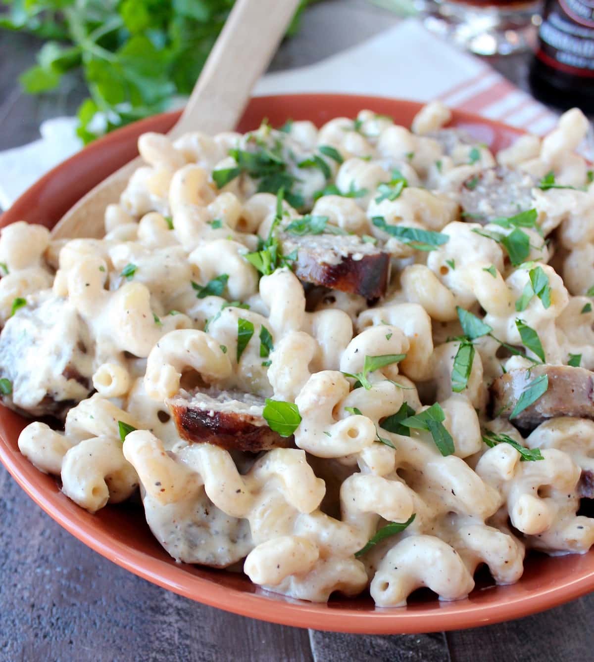 Whether it’s Buffalo Chicken Mac and Cheese, Butternut Squash Mac and Cheese, BBQ Chicken Mac and Cheese, or this new Bratwurst Beer Mac and Cheese recipe, I just can’t get enough of the creamy, cheesy, pasta goodness!