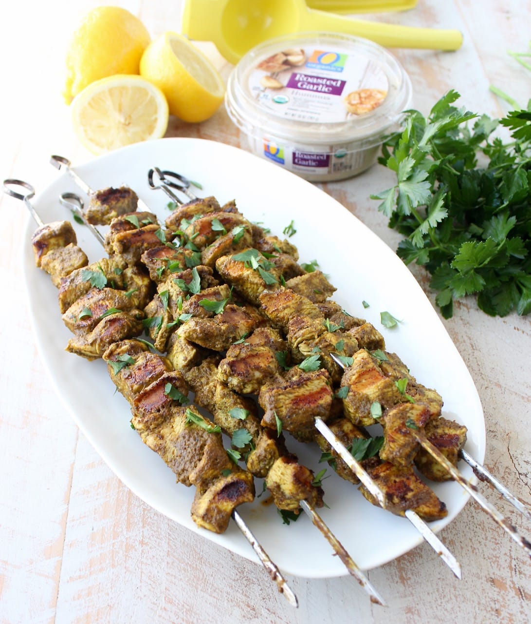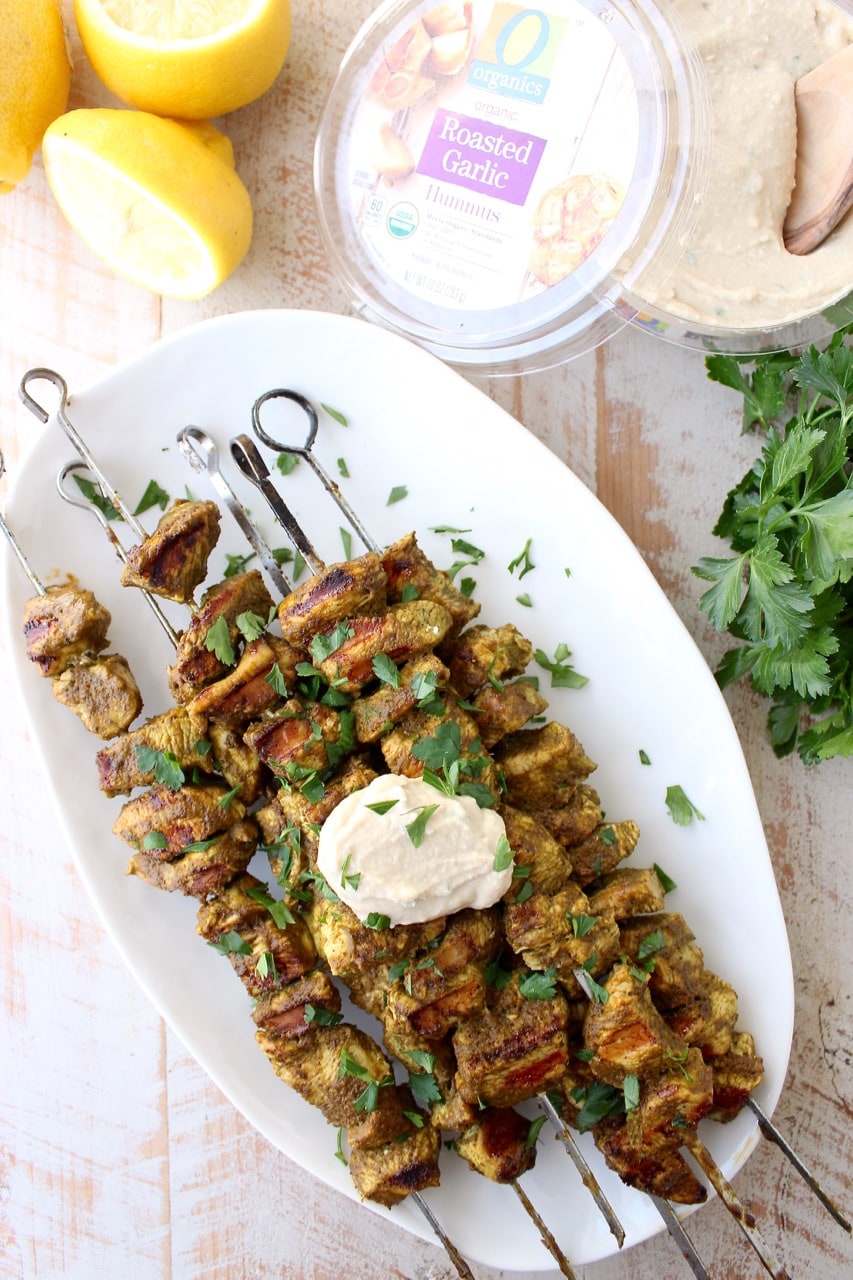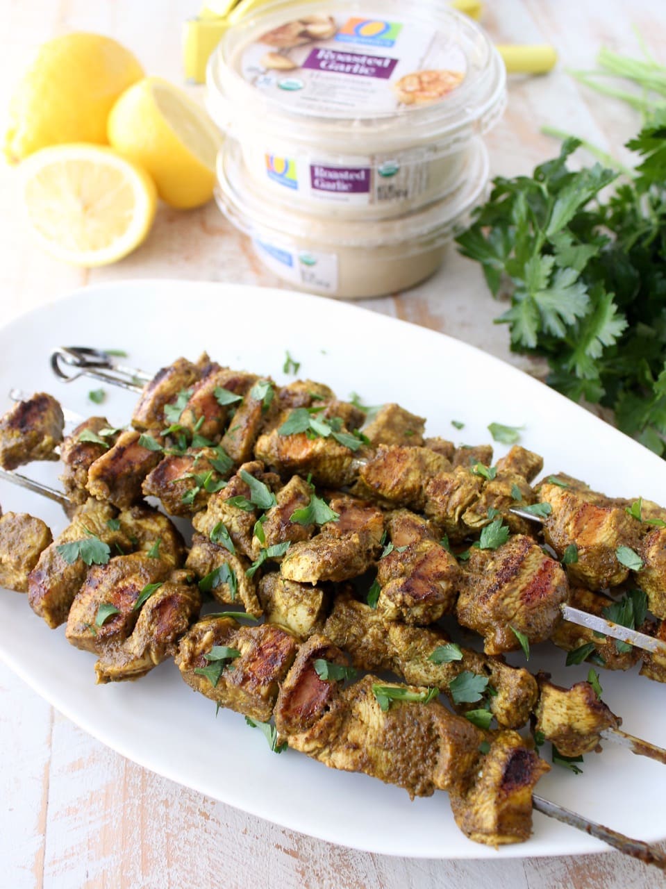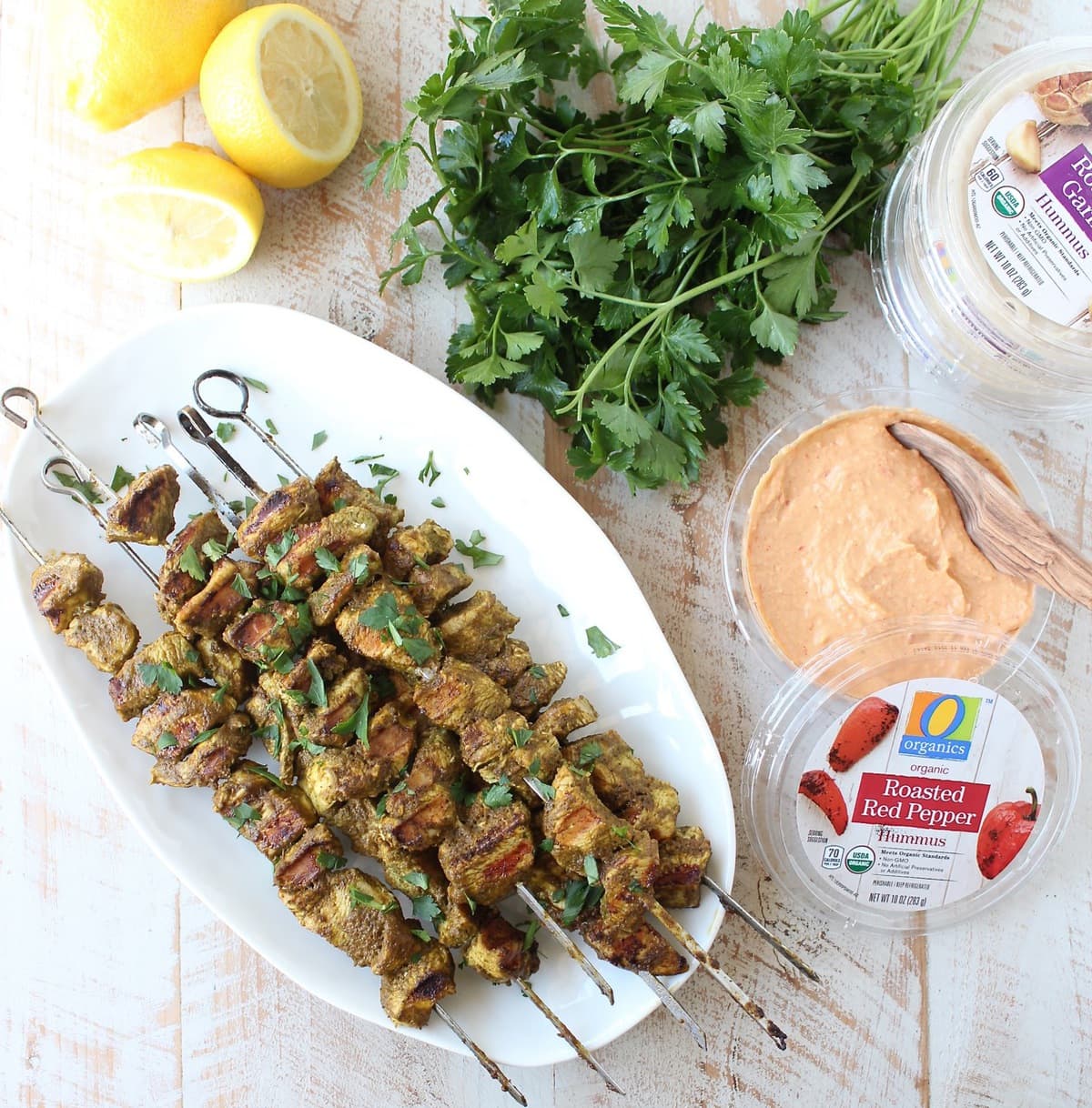 I then grilled the skewers and served them with a variety of O Organics Hummus flavors. You can scoop the hummus right over the skewers or serve it on the side for dipping.