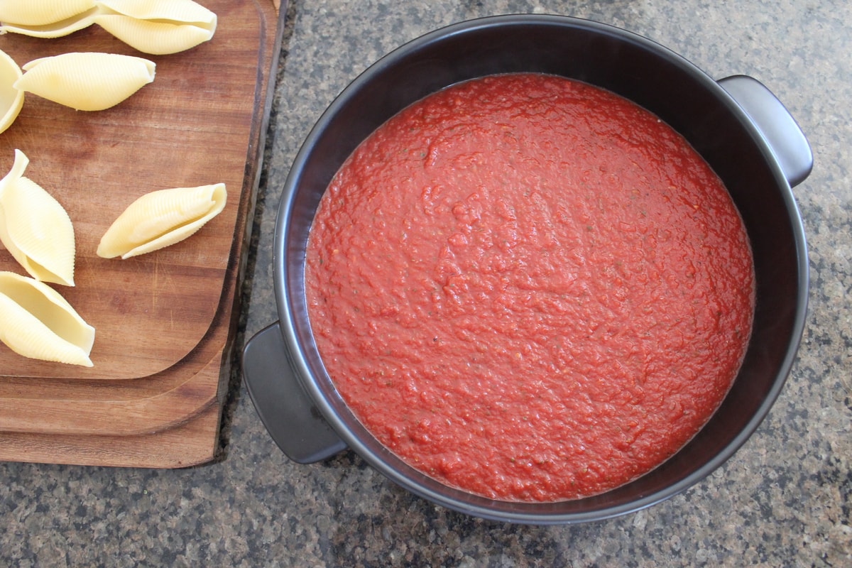 Cook the pasta shells. Bring a large pot of water to boil, add the shells and cook until al dente.