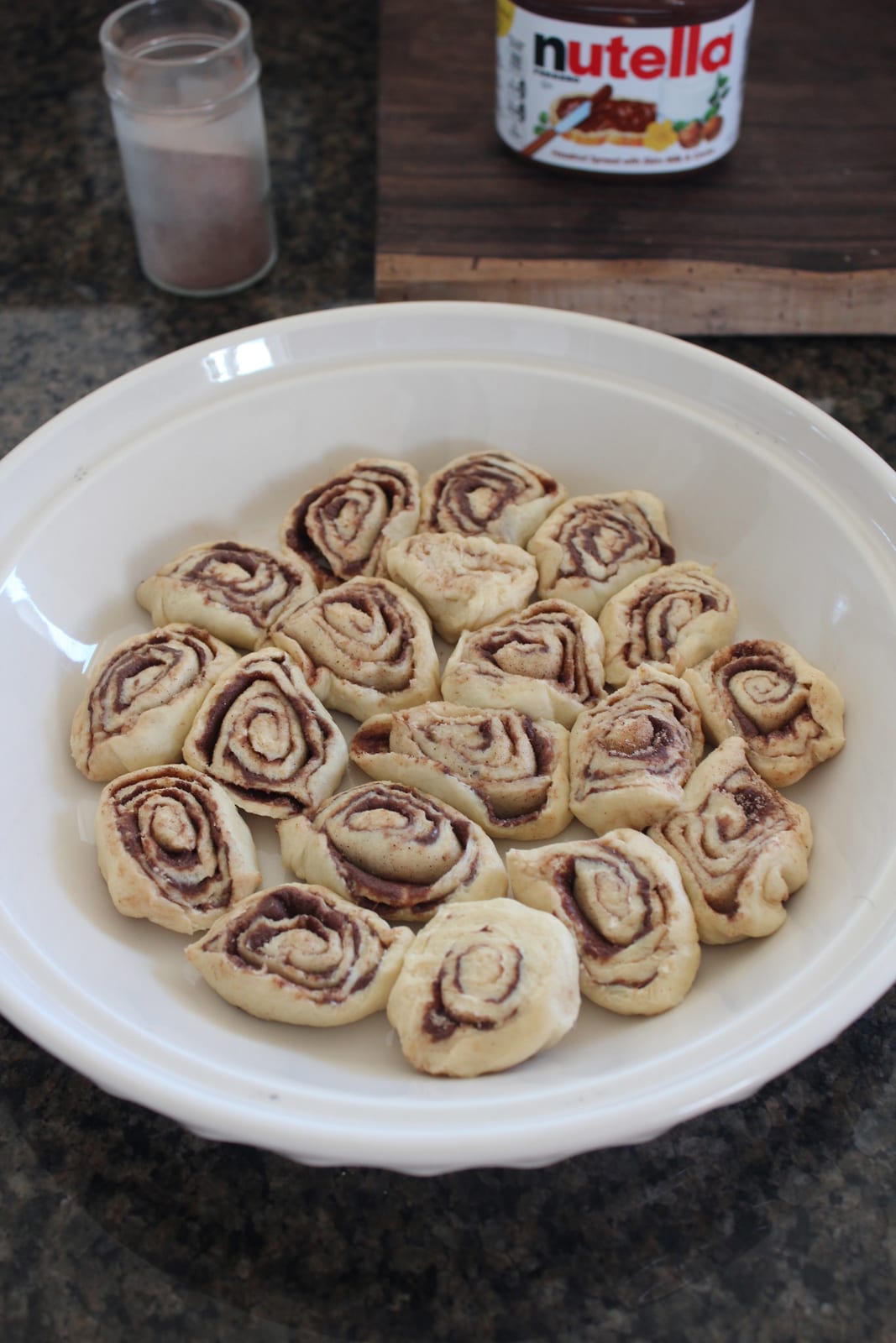 These mini Nutella cinnamon rolls are made with 6 simple ingredients in less than 30 minutes for an easy, sweet breakfast treat!