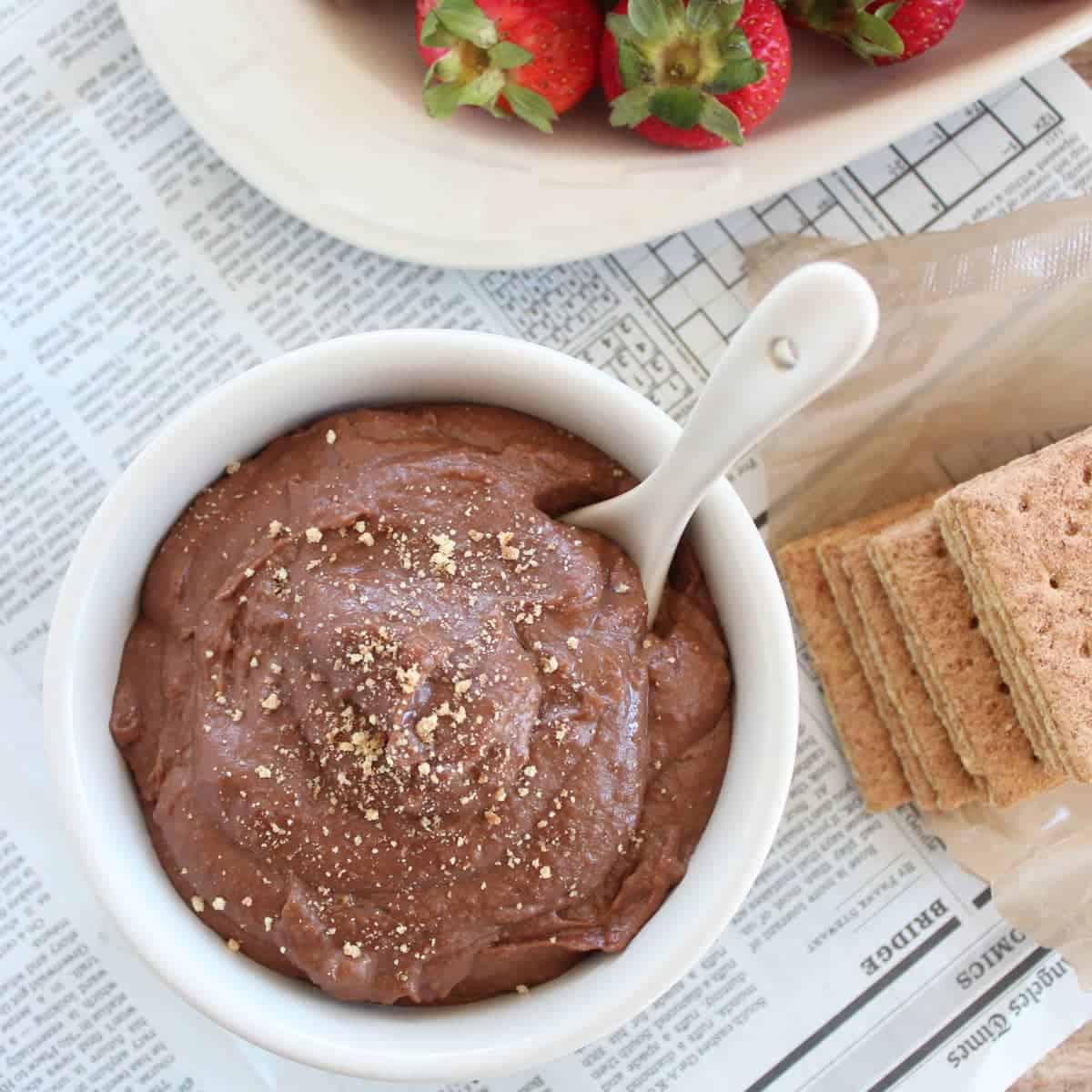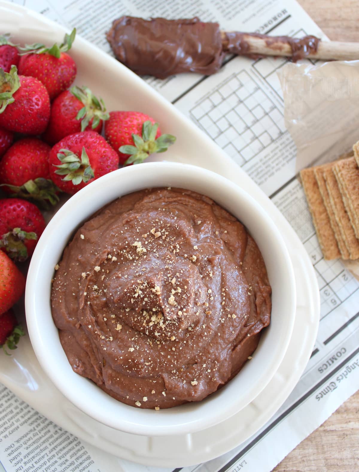 This Nutella Hummus recipe is an easy gluten free snack, perfect for serving with fresh fruit or graham crackers for dipping!
