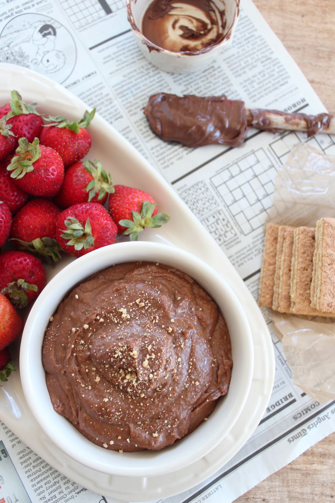 Plump, juicy, sweet strawberries, dipped into rich, creamy, chocolate hazelnut hummus, snacking doesn’t get much better than that!