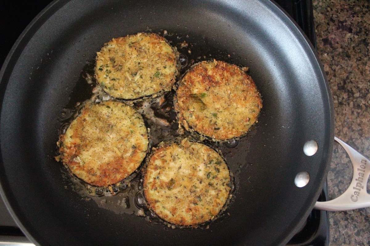 Once the oil is hot, add the eggplant and cook for 3-5 minutes per side, or until lightly browned.