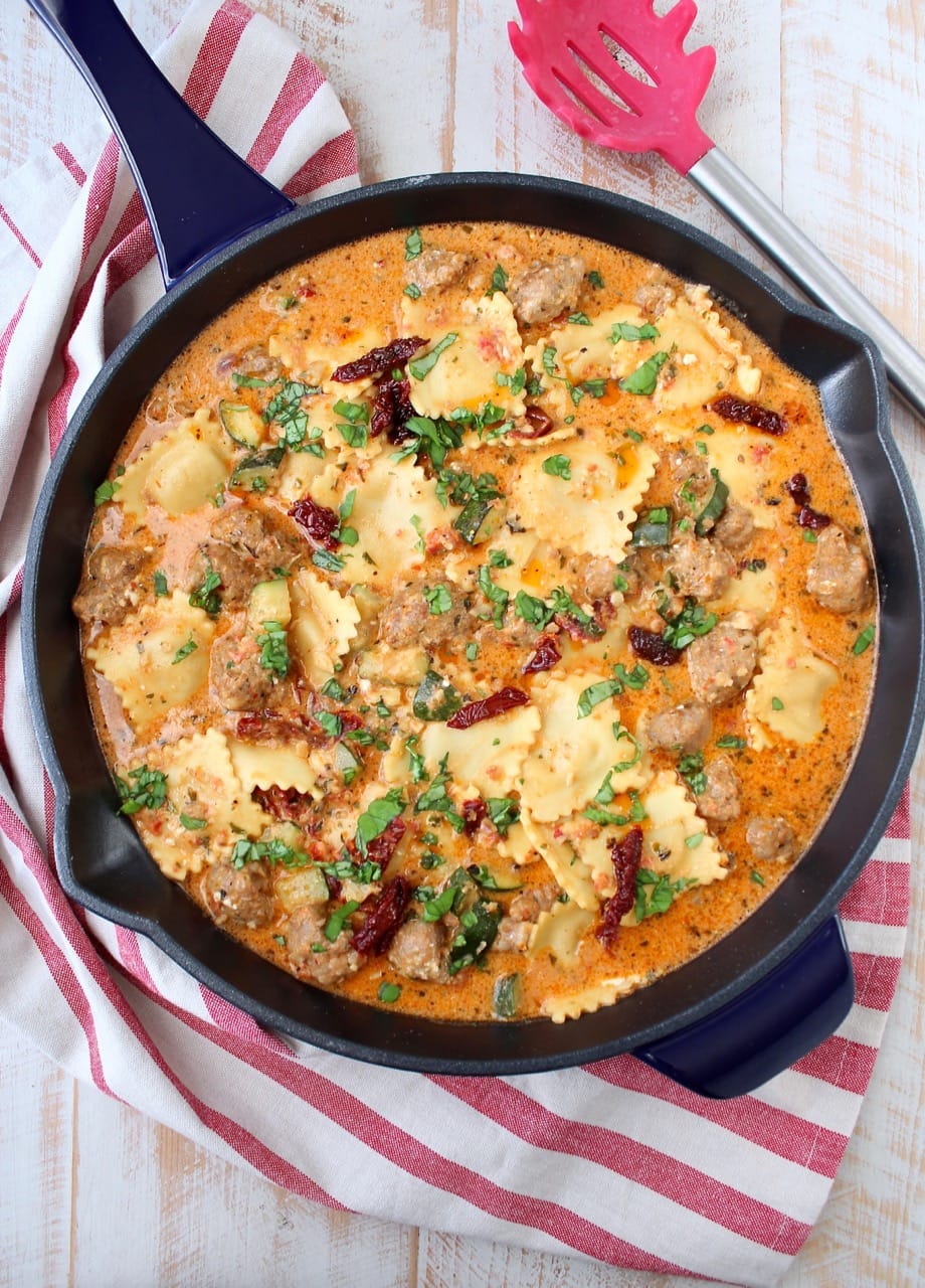 5 Comments on “One Pot Ravioli with Creamy Pesto Sauce & Sausage”