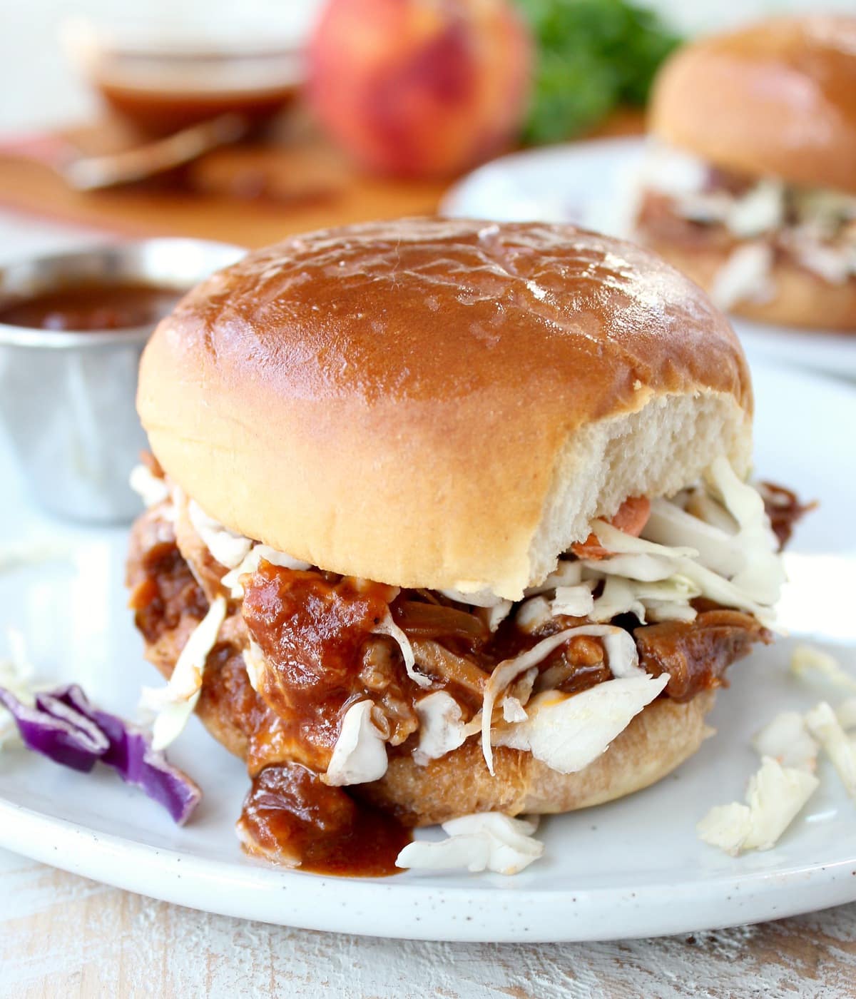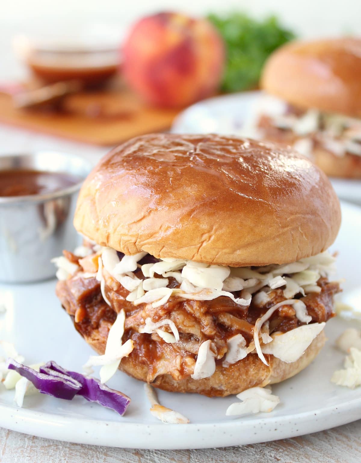 Slow Cooker Peach BBQ Pulled Pork Sandwich