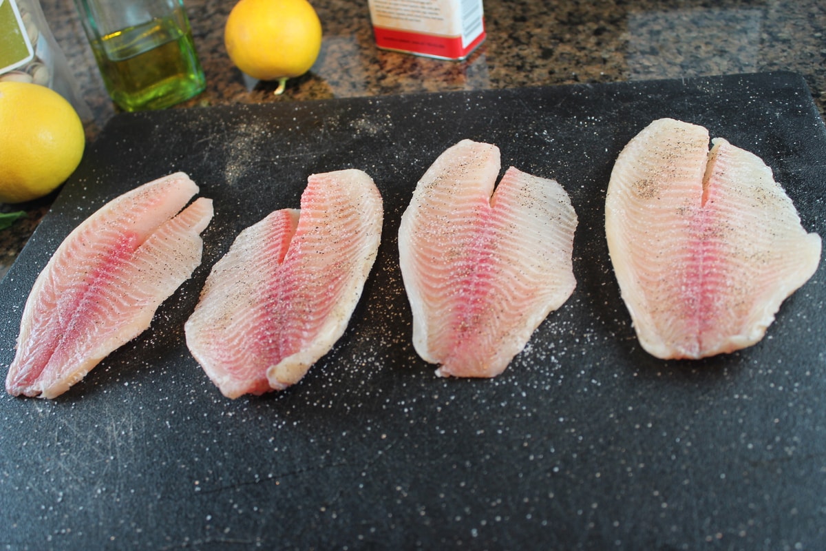 - Begin by sprinkling the salt and pepper on both sides of the tilapia.