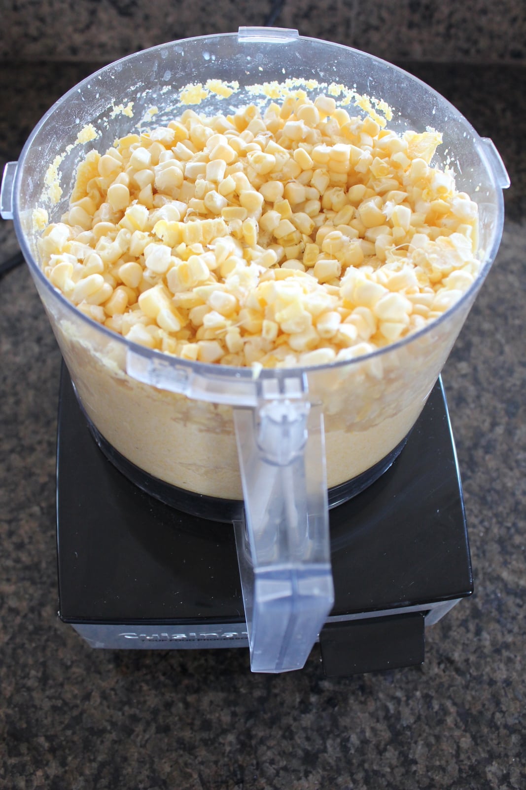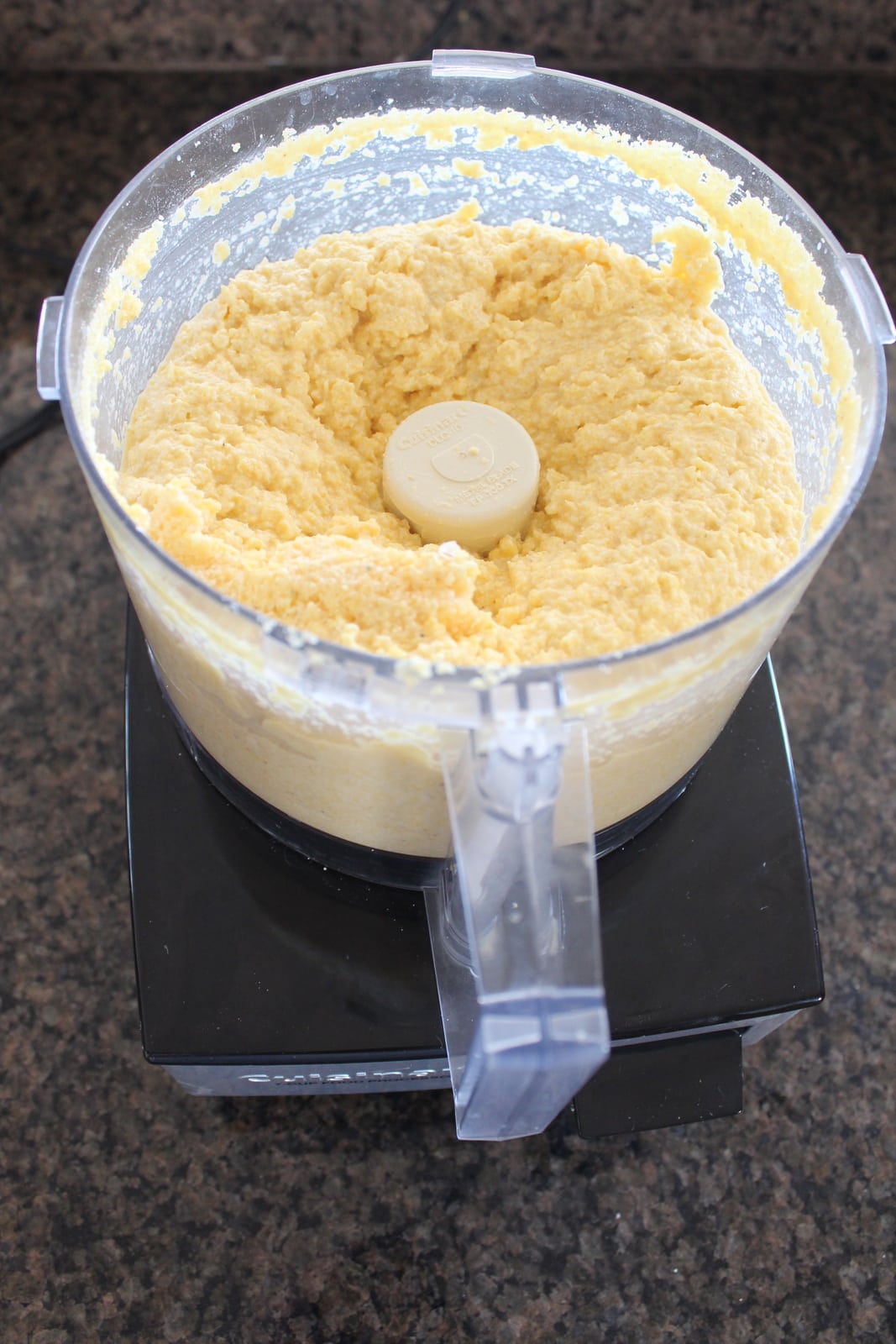 - Add the corn kernels to the food processor, blend until creamy.
