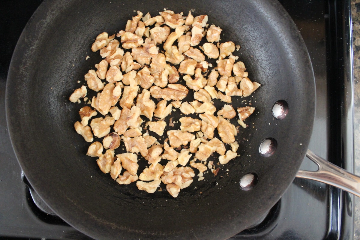 - While the vegetables are roasting, toast the walnuts in a small skillet over medium heat for 3-5 minutes.