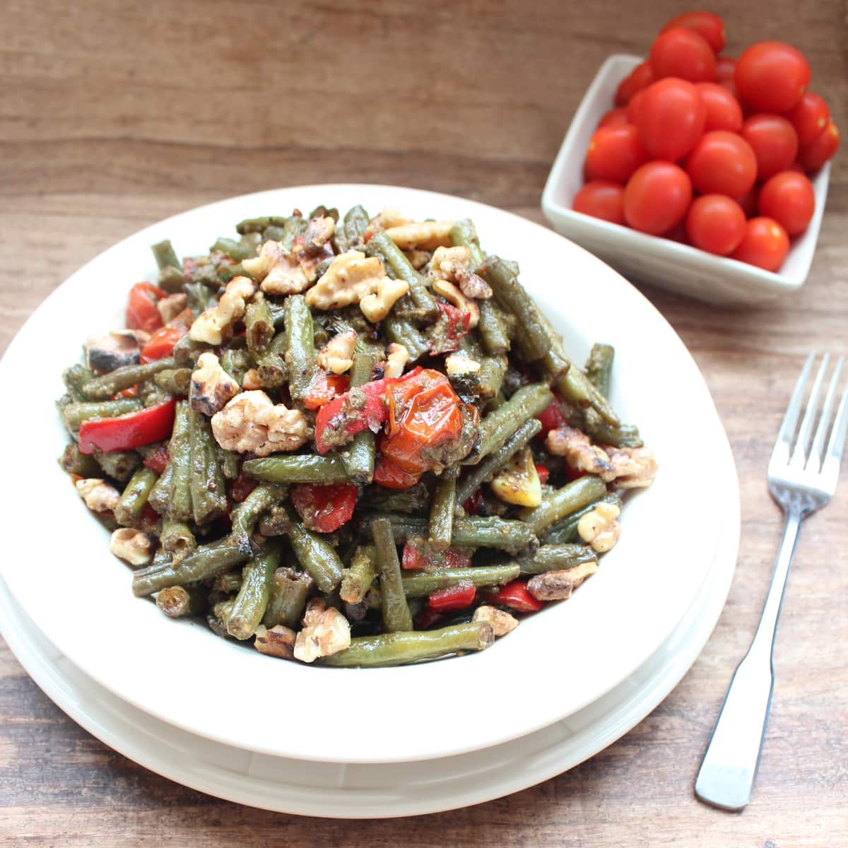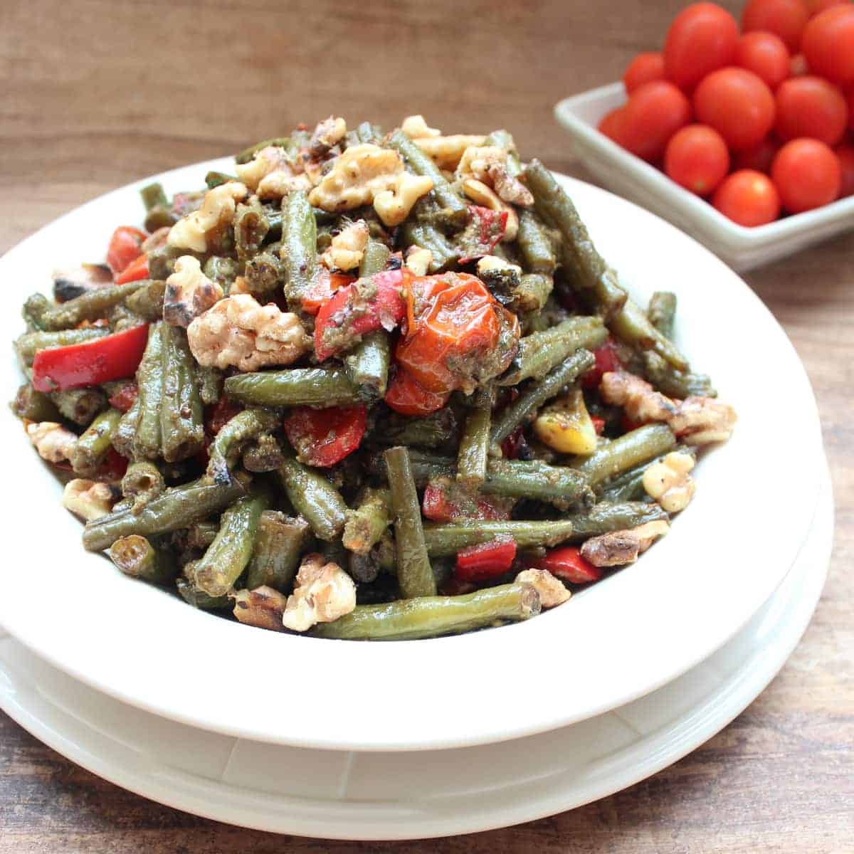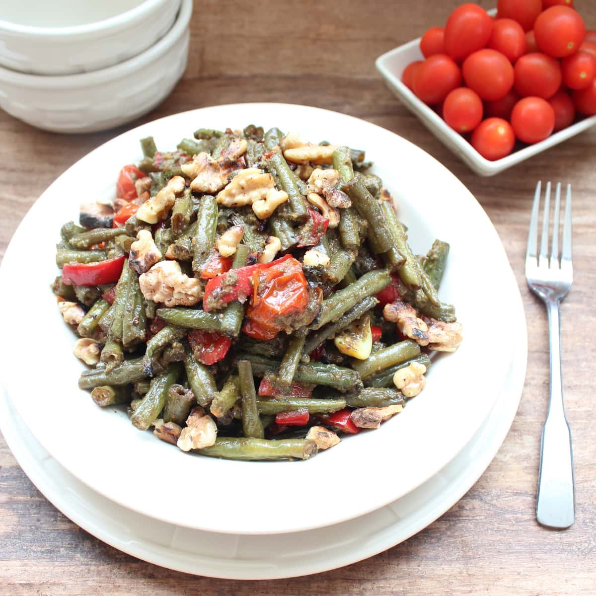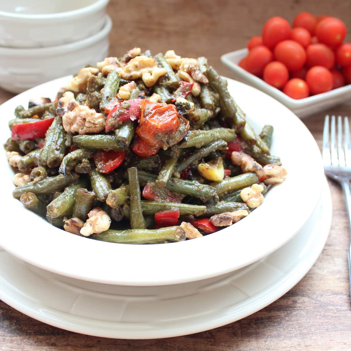 This simple & delicious vegan, paleo Roasted Green Bean Pesto Salad is bold in flavor and perfect for lunch or a side dish with dinner!