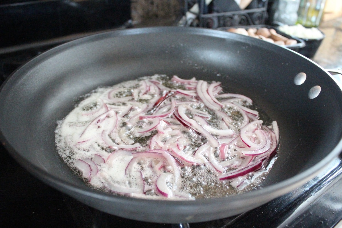 Melt the butter in a large skillet over medium-high heat. Add the onion and sauté 3-5 minutes.