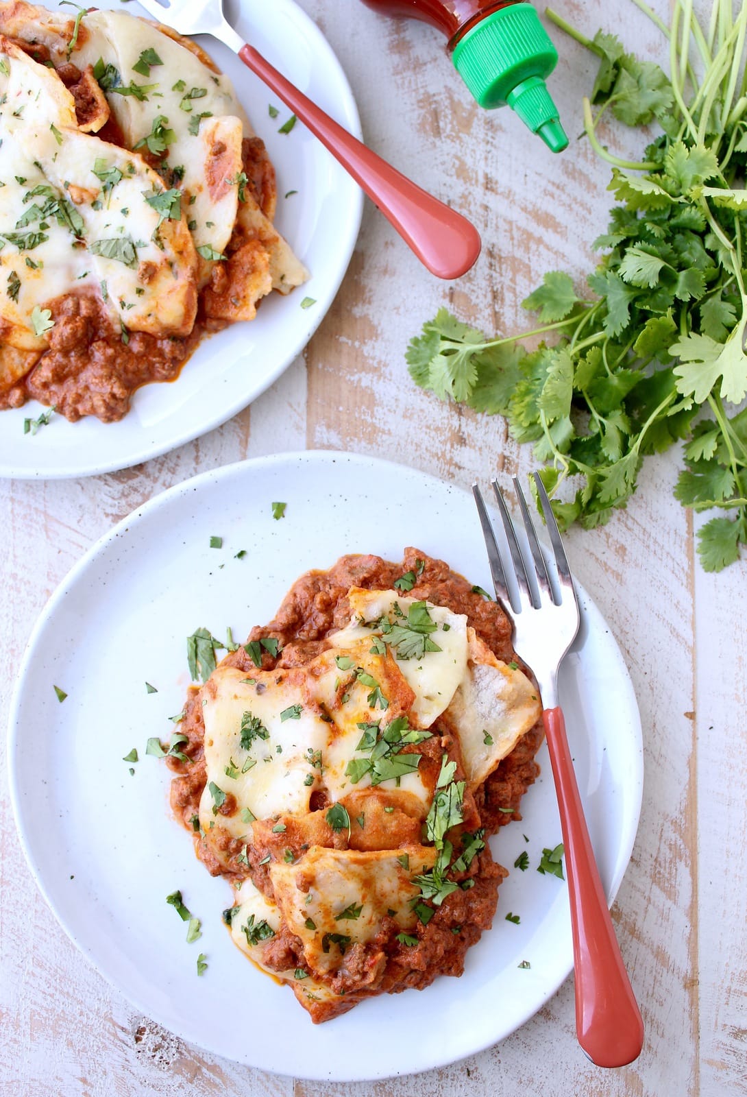 Skillet Sriracha Beef Enchiladas