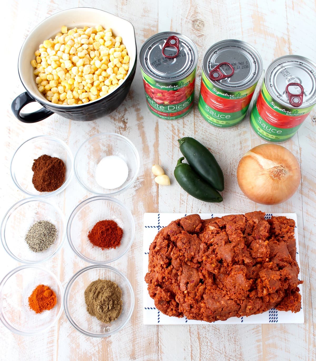 Growing up, we couldn’t have chili without cornbread, and this Chorizo Corn Chili recipe gave me the perfect excuse to whip up my favorite Gluten Free Cheddar Jalapeno Cornbread! It was a match made it cheesy jalapeño heaven 😉