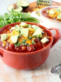 During the fall and winter months growing up in Oklahoma, my Mom would put on a crock pot of chili once a week. I loved smelling the delicious aromas from the chili when I arrived home from school!
