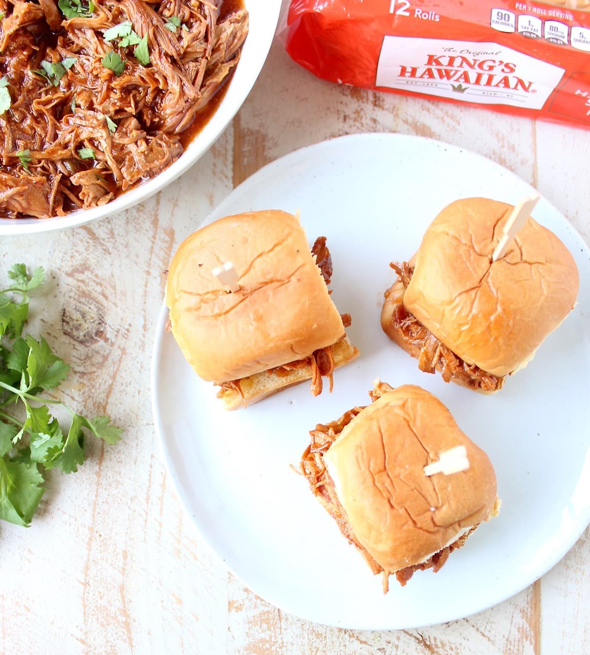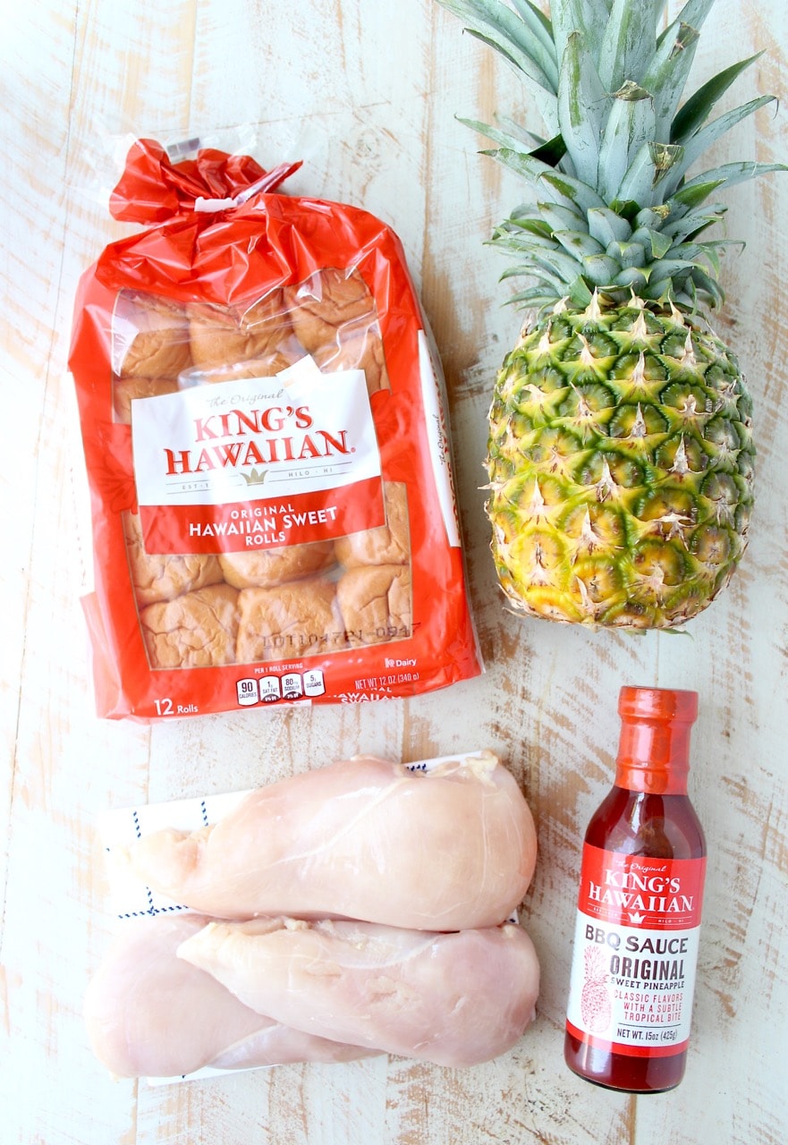 Remove the lid and shred the chicken, toss with the BBQ sauce and pineapple. Serve on King’s Hawaiian Rolls.
