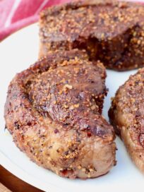 A Smoked New York Strip Roast is an impressive recipe, that’s also easy to make! With a simple peppercorn rub, low and slow smoke, and a quick sear to finish, this roast is tender, flavorful and a great way to serve perfectly cooked New York Strip steaks for a dinner party, or holiday meal.