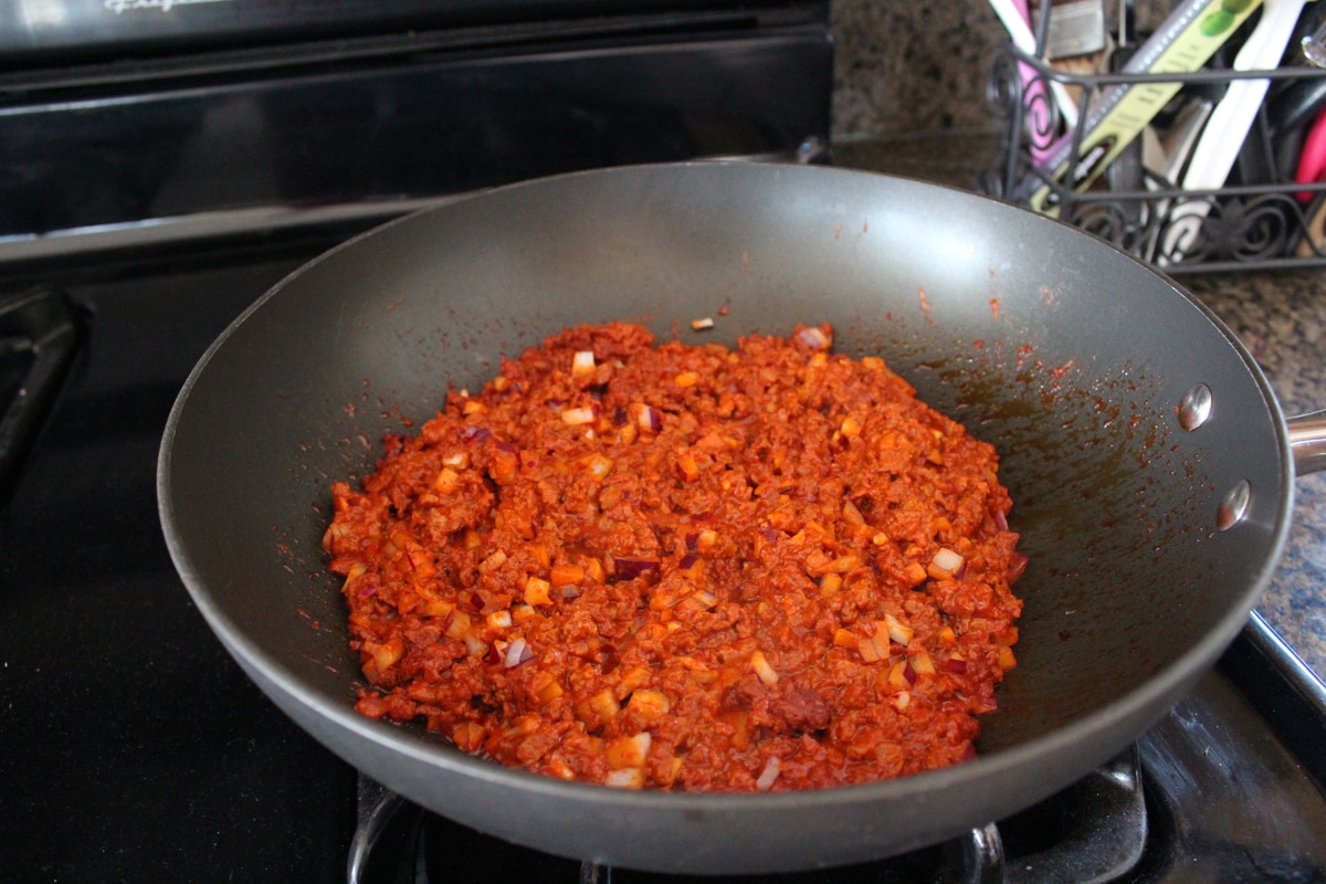 - Add 1 tsp chili powder, 1 tsp cumin and red pepper flakes to the sauce.