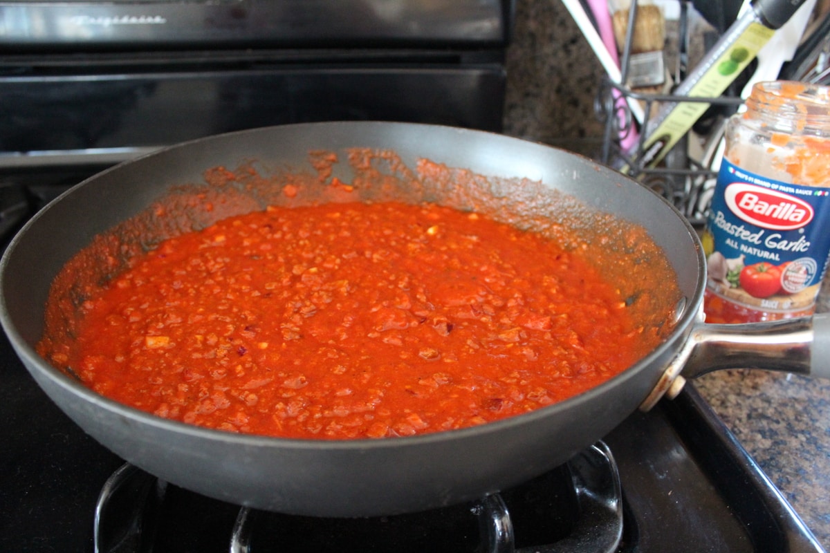 - Cook for 8-10 minutes, then add the roasted garlic marinara sauce.