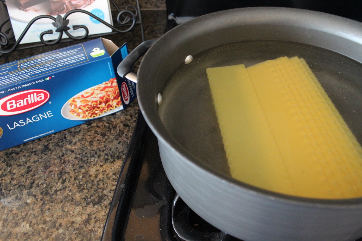 - In the mean time, boil the lasagna noodles for 8 minutes.
