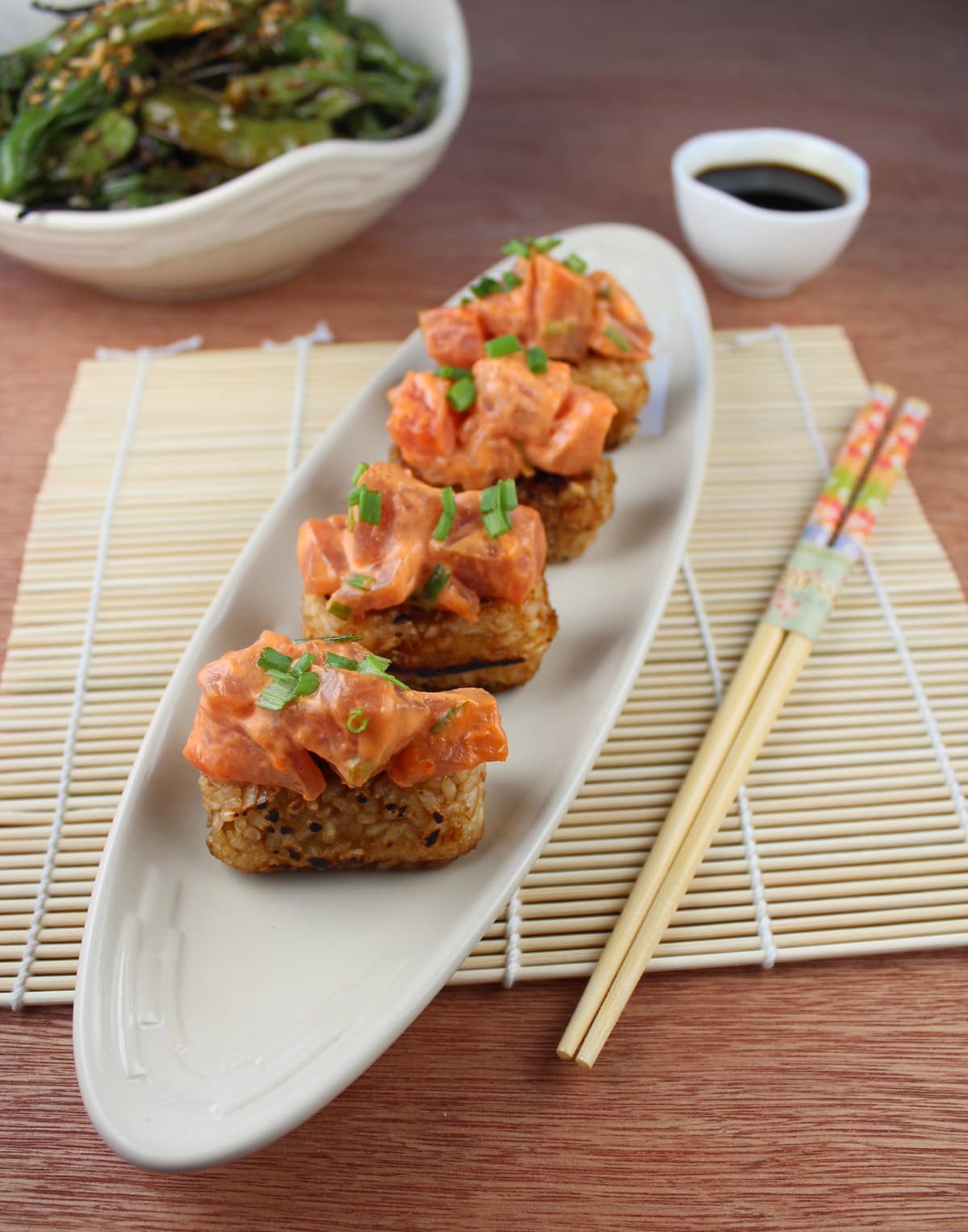 Next on the list to make was my sushi restaurant favorite and yours, Spicy Tuna Crispy Rice Cakes.