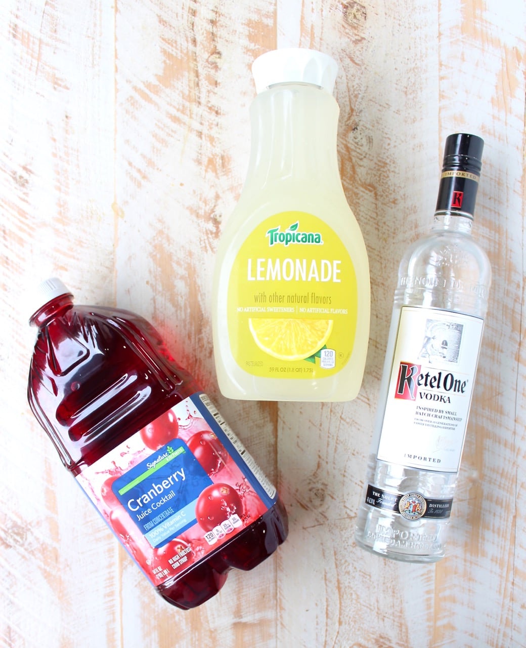 - Add lemonade, cranberry juice, vodka and ice to a cocktail shaker.