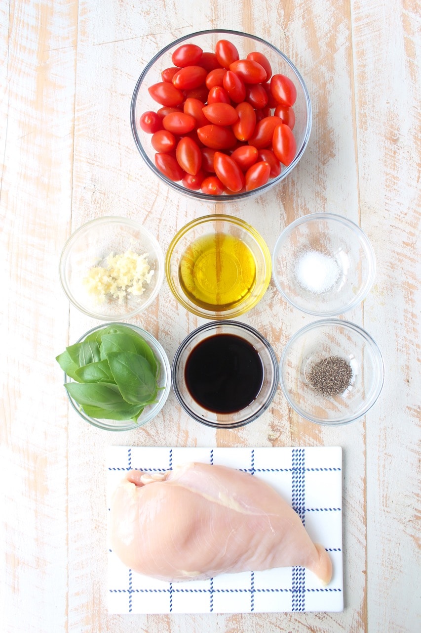I love the burst of sweetness from the cherry tomatoes paired with the balsamic, garlic, basil marinated chicken. It’s light, flavorful and perfect for a healthy meal!