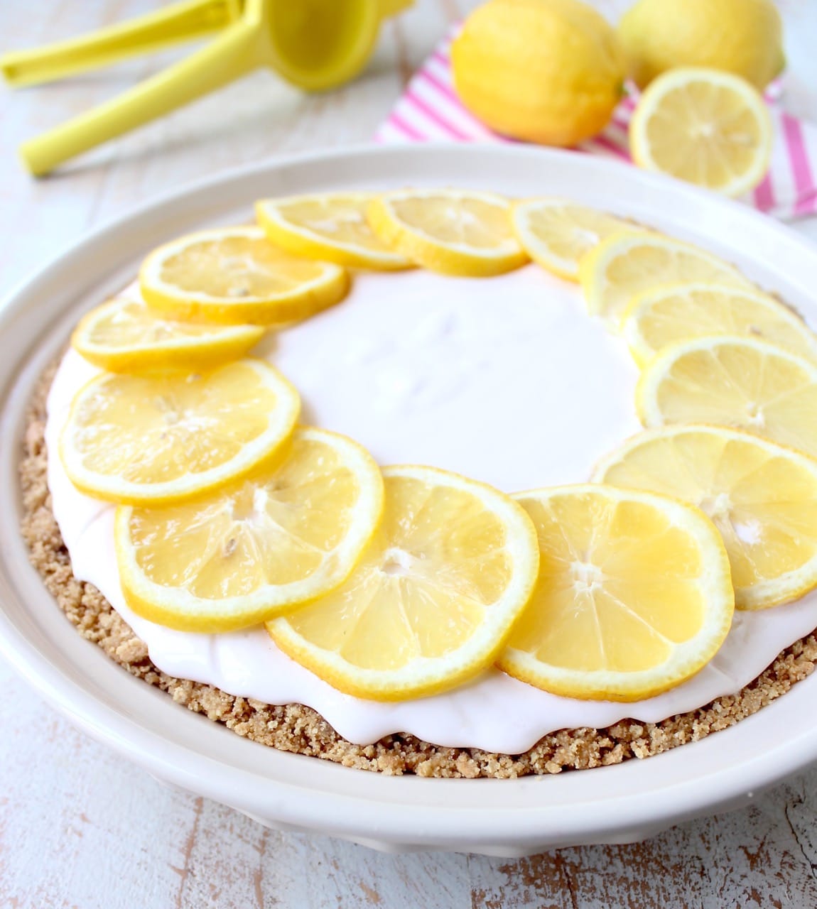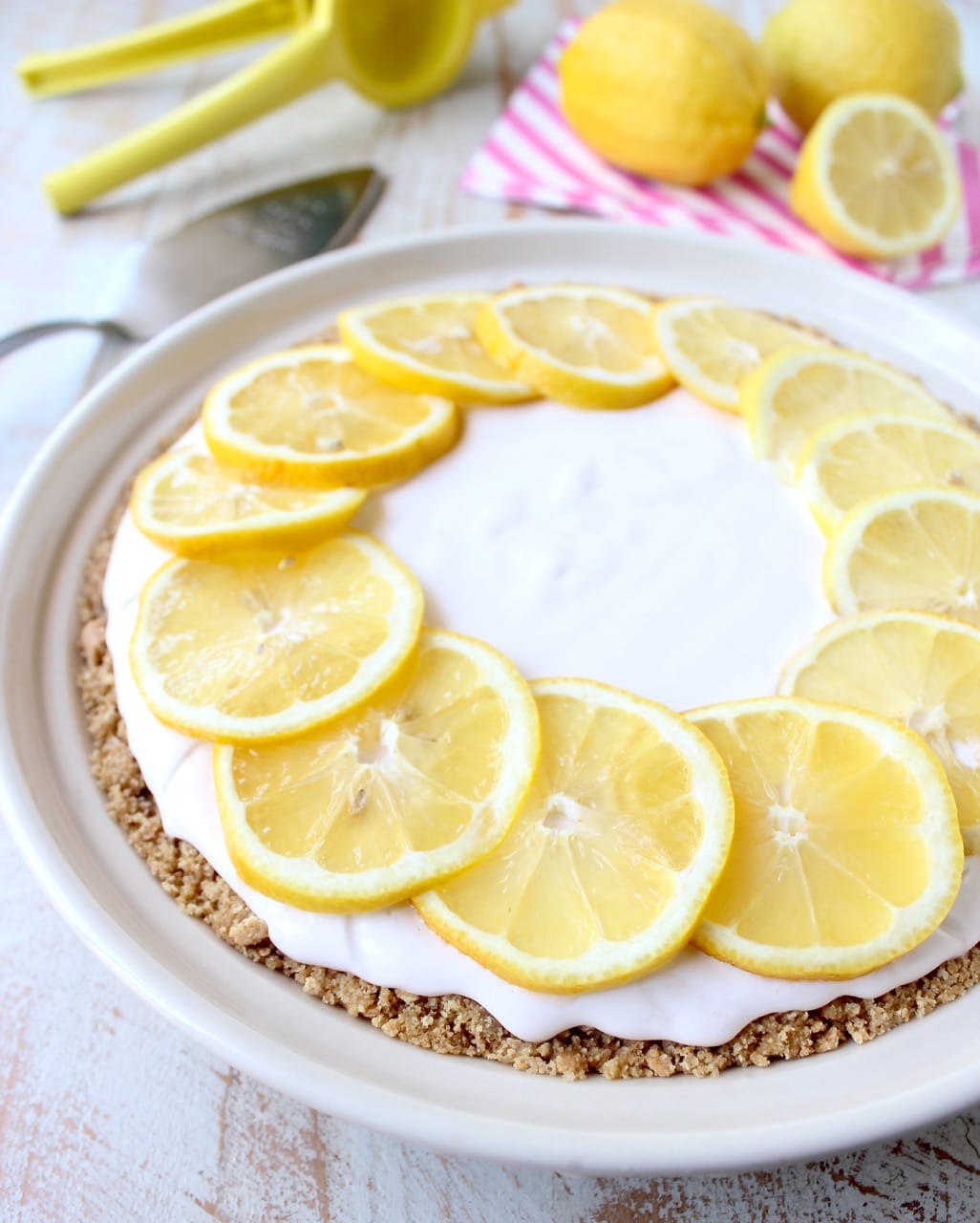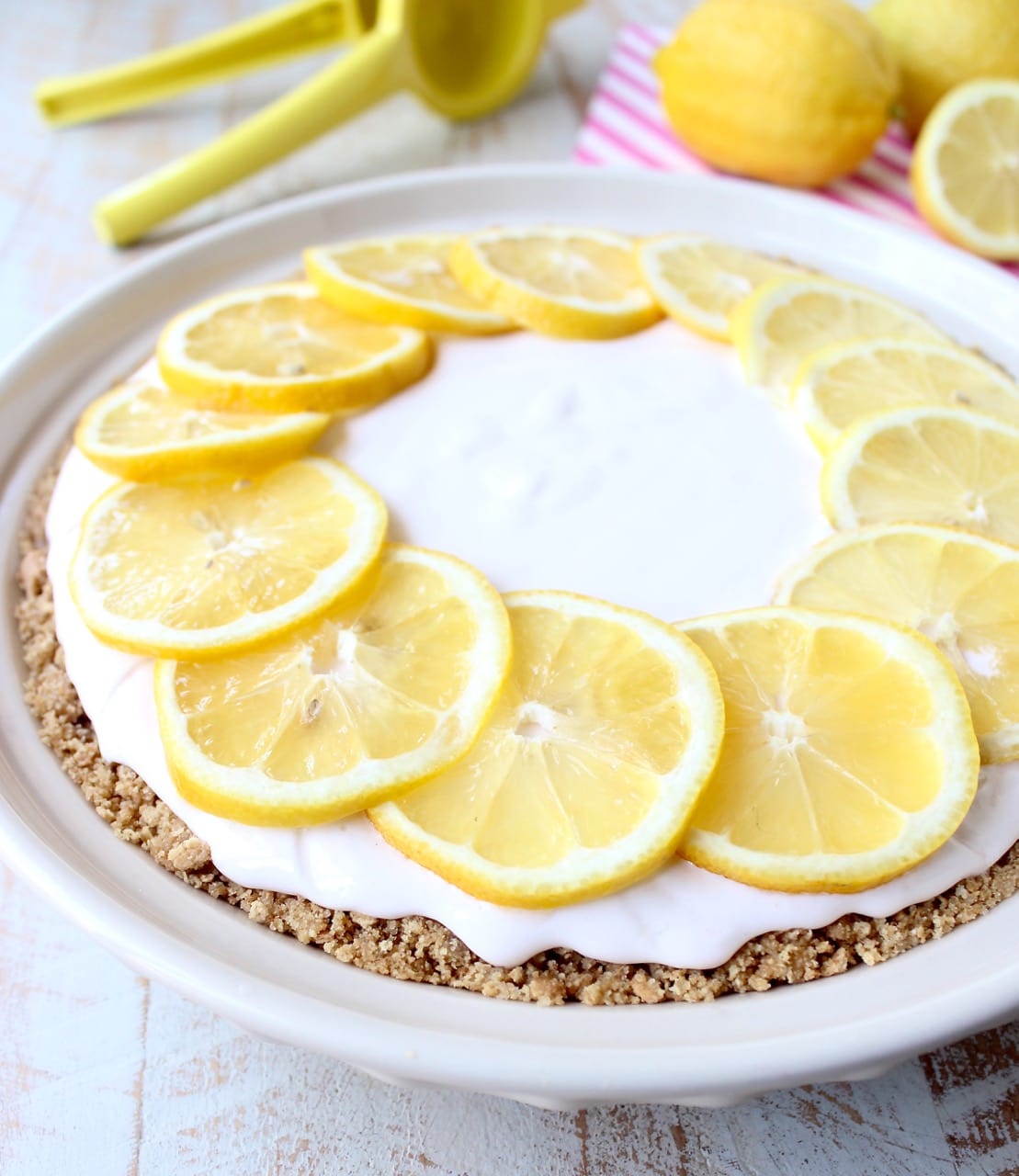 I lined the edges of mine with 2 thinly sliced lemons to “pretty-up” the pie! This is simply for looks and totally optional!