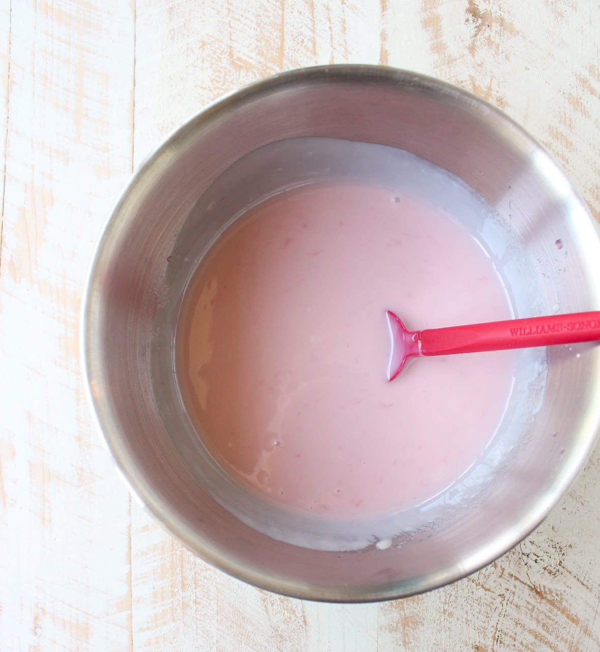 - In a large bowl, combine the pink lemonade and condensed milk.