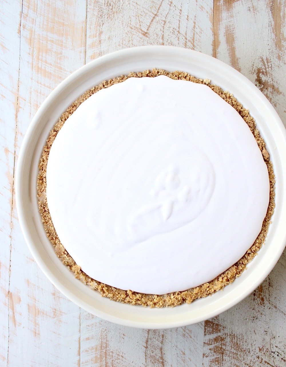 Pour the filling into the crust.